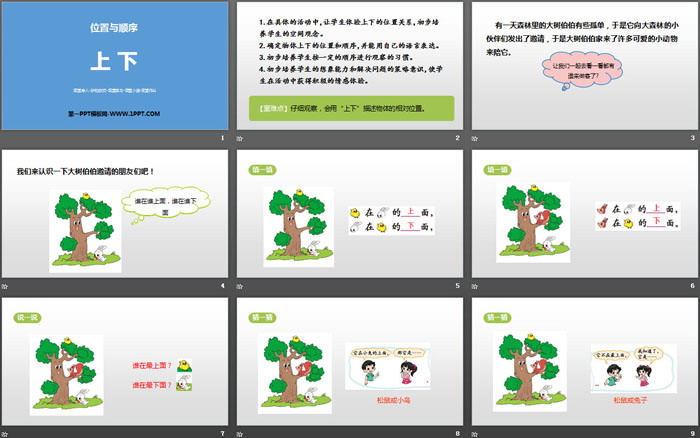 关键词:北师大版一年级上册数学PPT课件免费下载,上下PPT下载,位置与顺序PPT下载,.PPT格式;