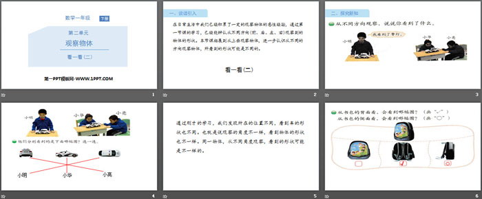 关键词:北师大版一年级下册数学PPT课件免费下载,看一看PPT下载,观察物体PPT下载,.PPT格式;