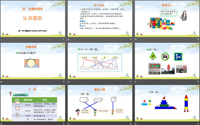 关键词:北师大版一年级下册数学PPT课件免费下载,认识图形PPT下载,有趣的图形PPT下载,.PPT格式;