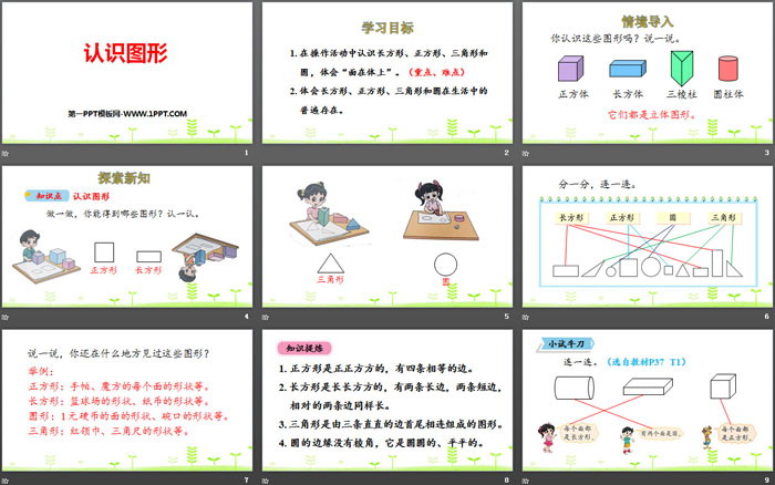 关键词:北师大版一年级下册数学PPT课件免费下载,认识图形PPT下载,有趣的图形PPT下载,.PPT格式;