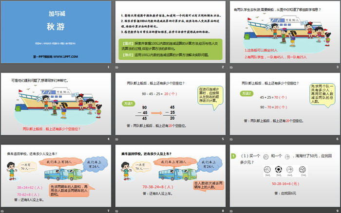 关键词:北师大版二年级上册数学PPT课件免费下载,秋游PPT下载,加与减PPT下载,.PPT格式;
