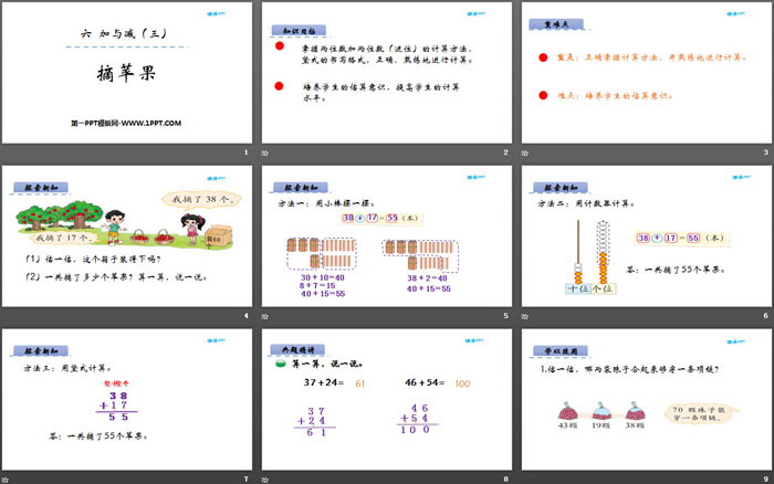 关键词:北师大版一年级下册数学PPT课件免费下载,摘苹果PPT下载,加与减PPT下载,.PPT格式;