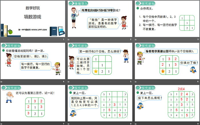 关键词:北师大版一年级下册数学PPT课件免费下载,填数游戏PPT下载,数学好玩PPT下载,.PPT格式;