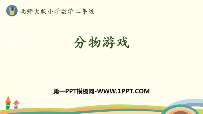 关键词:北师大版二年级上册数学PPT课件免费下载,分物游戏PPT下载,分一分与除法PPT下载,.PPT格式;