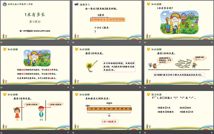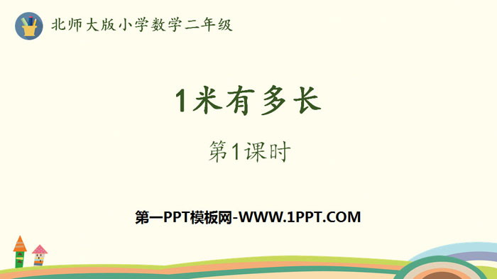 关键词:北师大版二年级上册数学PPT课件免费下载,1米有多长PPT下载,测量PPT下载,.PPT格式;