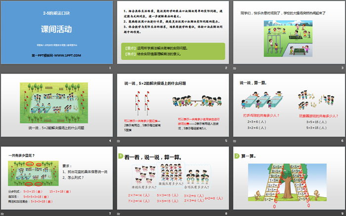 关键词:北师大版二年级上册数学PPT课件免费下载,课间活动PPT下载,2~5的乘法口诀PPT下载,.PPT格式;