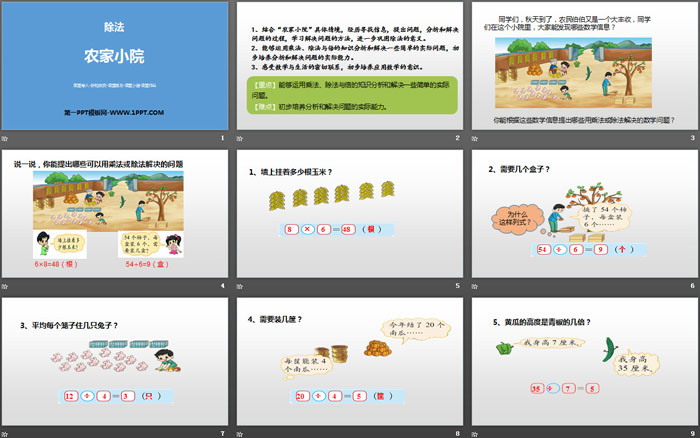 关键词:北师大版二年级上册数学PPT课件免费下载,农家小院PPT下载,除法PPT下载,.PPT格式;