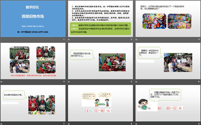 关键词:北师大版二年级上册数学PPT课件免费下载,班级旧物市场PPT下载,数学好玩PPT下载,.PPT格式;