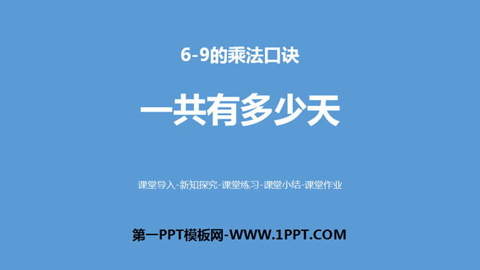关键词:北师大版二年级上册数学PPT课件免费下载,一共有多少天PPT下载,6~9的乘法口诀PPT下载,.PPT格式;
