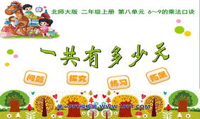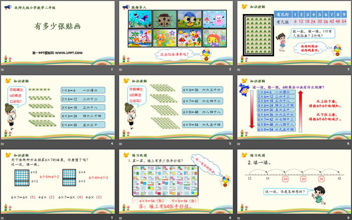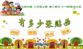 关键词:北师大版二年级上册数学PPT课件免费下载,有多少张贴画PPT下载,6~9的乘法口诀PPT下载,.PPT格式;
