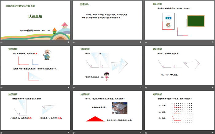 关键词:北师大版二年级下册数学PPT课件免费下载,认识直角PPT下载,认识图形PPT下载,.PPT格式;