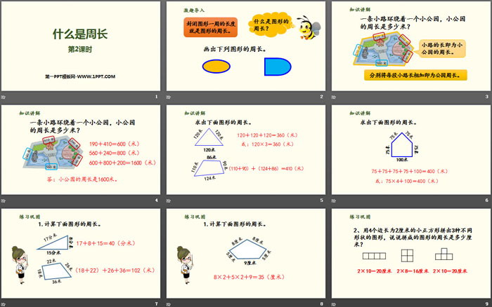 关键词:北师大版三年级上册数学PPT课件免费下载,什么是周长PPT下载,周长PPT下载,.PPT格式;