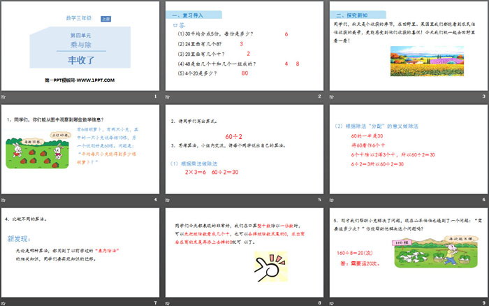 关键词:北师大版三年级上册数学PPT课件免费下载,丰收了PPT下载,乘与除PPT下载,.PPT格式;