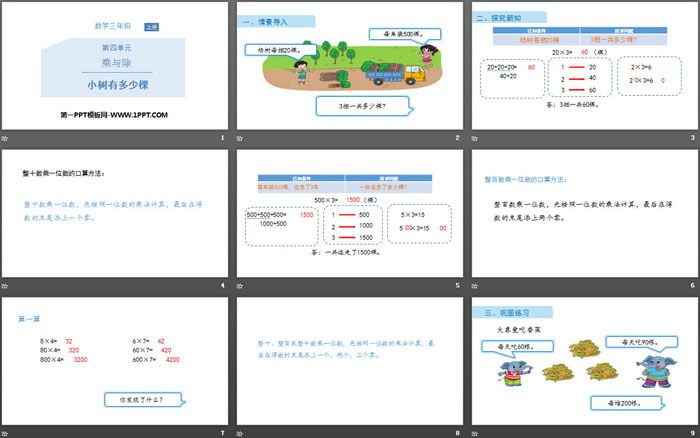 关键词:北师大版三年级上册数学PPT课件免费下载,小树有多少棵PPT下载,乘与除PPT下载,.PPT格式;