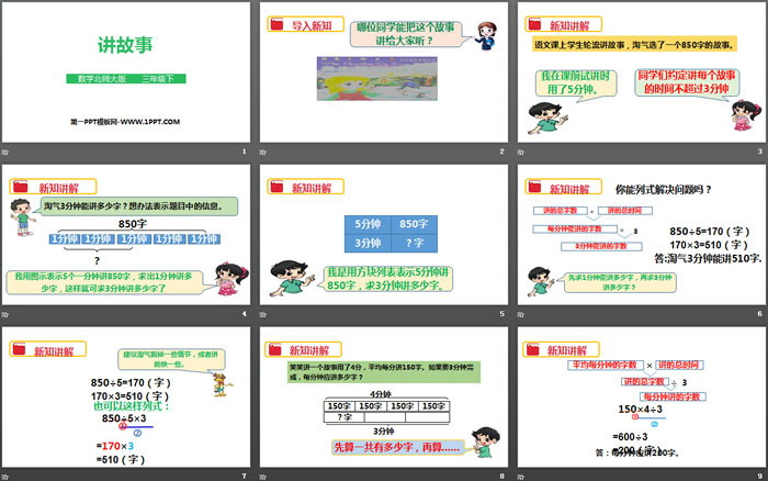关键词:北师大版三年级下载册数学PPT课件免费下载,讲故事PPT下载,除法PPT下载,.PPT格式;