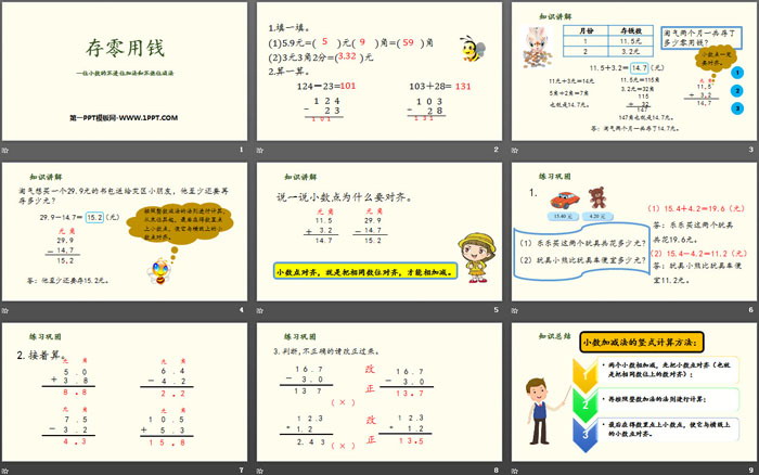 关键词:北师大版三年级上册数学PPT课件免费下载,存零用钱PPT下载,认识小数PPT下载,.PPT格式;