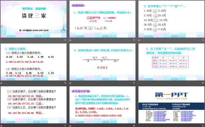 关键词:北师大版三年级上册数学PPT课件免费下载,货比三家PPT下载,认识小数PPT下载,.PPT格式;