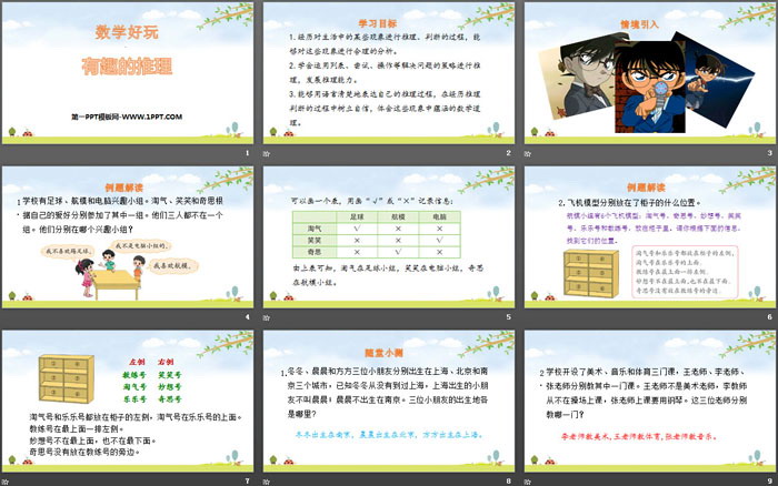 关键词:北师大版三年级下载册数学PPT课件免费下载,有趣的推理PPT下载,数学好玩PPT下载,.PPT格式;