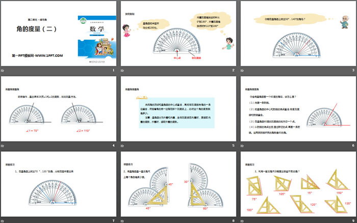 关键词:北师大版四年级上册数学PPT课件免费下载,角的度量PPT下载,线与角PPT下载,.PPT格式;