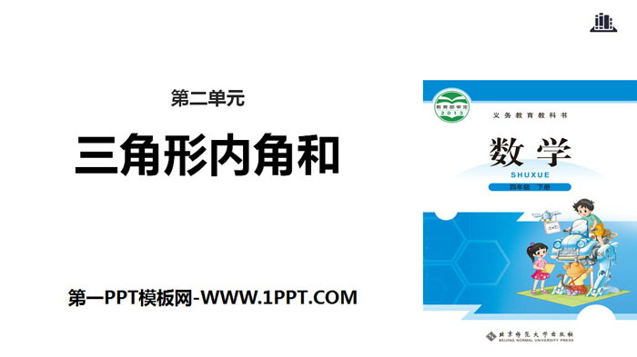 关键词:北师大版四年级下册数学PPT课件免费下载,三角形内角和PPT下载,认识三角形和四边形PPT下载,.PPT格式;