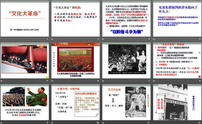 关键词:社会主义道路的探索教学课件,文化大革命教学课件,中华书局版八年级下册历史PPT课件下载,八年级历史幻灯片课件下载,社会主义道路的探索PPT课件下载,文化大革命PPT课件下载,.PPT格式;