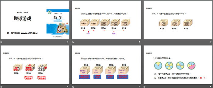 关键词:北师大版四年级上册数学PPT课件免费下载,摸球游戏PPT下载,可能性PPT下载,.PPT格式;