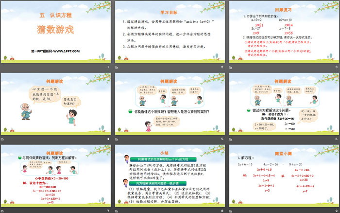 关键词:北师大版四年级下册数学PPT课件免费下载,猜数游戏PPT下载,认识方程PPT下载,.PPT格式;