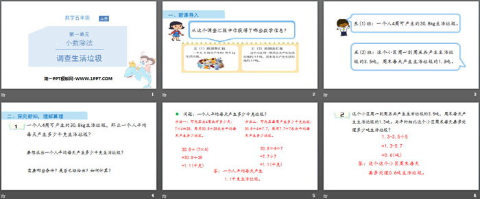 关键词:北师大版五年级上册数学PPT课件免费下载,调查生活垃圾PPT下载,小数除法PPT下载,.PPT格式;