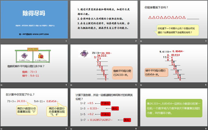 1.通过计算发现余数和商的特点,知道什么是循环小数。