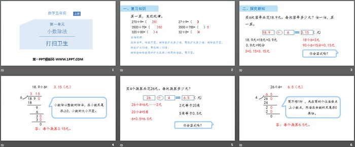 关键词:北师大版五年级上册数学PPT课件免费下载,打扫卫生PPT下载,小数除法PPT下载,.PPT格式;