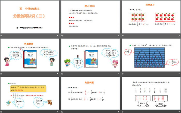 关键词:北师大版五年级上册数学PPT课件免费下载,分数的再认识PPT下载,分数的意义PPT下载,.PPT格式;