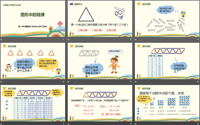 关键词:北师大版五年级上册数学PPT课件免费下载,图形中的规律PPT下载,数学好玩PPT下载,.PPT格式;