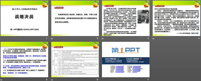 关键词:人民解放战争的胜利教学课件,战略决战教学课件,中华书局版八年级上册历史PPT课件下载,八年级历史幻灯片课件下载,人民解放战争的胜利PPT课件下载,战略决战PPT课件下载,.PPT格式;