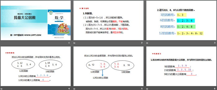 找最大公因数PPT,第四部分内容:课 堂 小 结