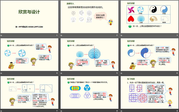 关键词:北师大版六年级上册数学PPT课件免费下载,欣赏与设计PPT下载,圆PPT下载,.PPT格式;