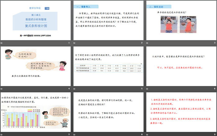 关键词:北师大版五年级下册数学PPT课件免费下载,复式条形统计图PPT下载,数据的表示和分析PPT下载,.PPT格式;