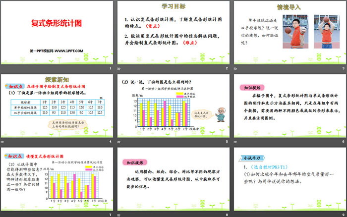关键词:北师大版五年级下册数学PPT课件免费下载,复式条形统计图PPT下载,数据的表示和分析PPT下载,.PPT格式;