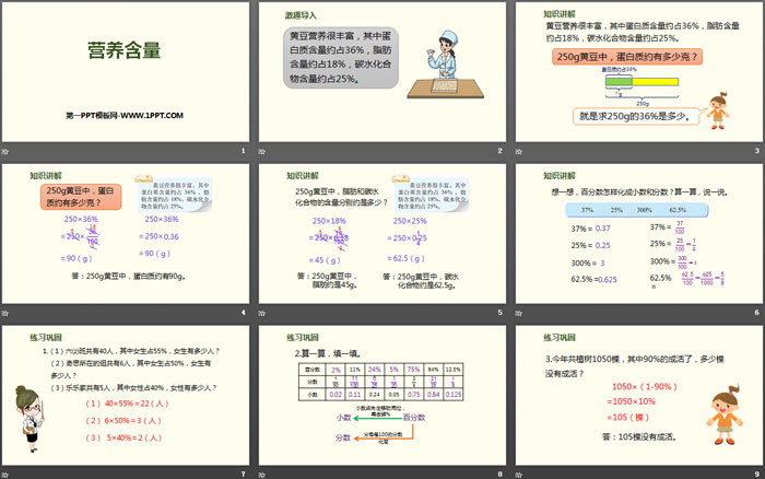 关键词:北师大版六年级上册数学PPT课件免费下载,营养含量PPT下载,百分数PPT下载,.PPT格式;