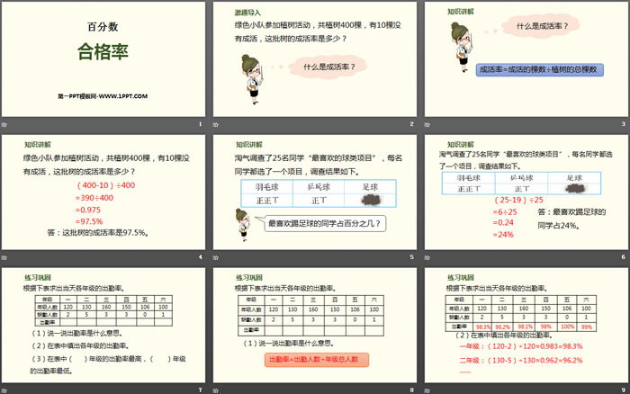关键词:北师大版六年级上册数学PPT课件免费下载,合格率PPT下载,百分数PPT下载,.PPT格式;