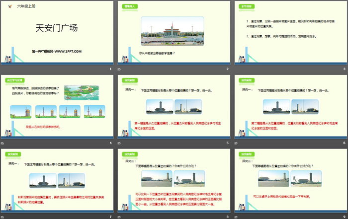关键词:北师大版六年级上册数学PPT课件免费下载,天安门广场PPT下载,观察物体PPT下载,.PPT格式;