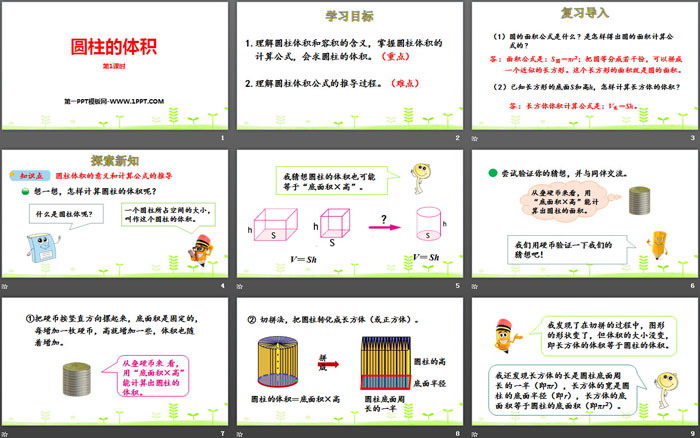 2.理解圆柱体积公式的推导过程。(难点)