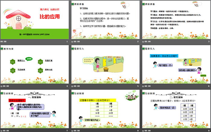 关键词:北师大版六年级上册数学PPT课件免费下载,比的应用PPT下载,比的认识PPT下载,.PPT格式;