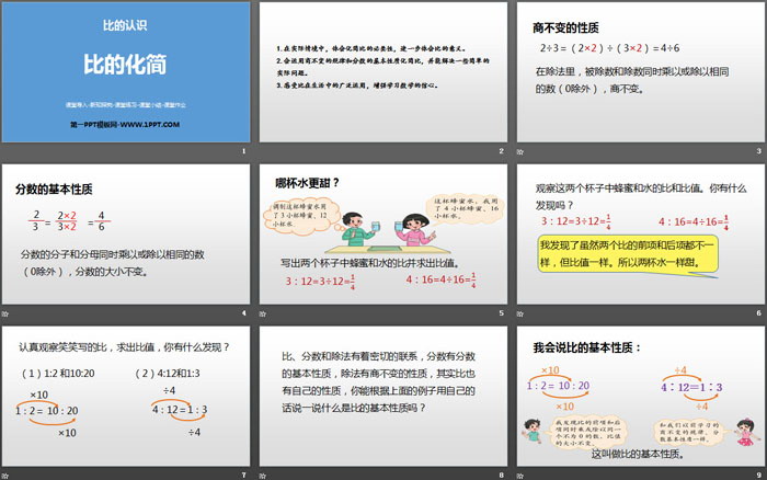 关键词:北师大版六年级上册数学PPT课件免费下载,比的化简PPT下载,比的认识PPT下载,.PPT格式;