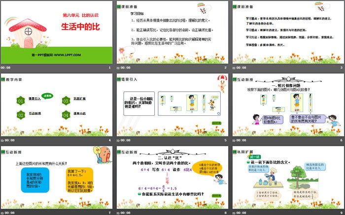 关键词:北师大版六年级上册数学PPT课件免费下载,生活中的比PPT下载,比的认识PPT下载,.PPT格式;