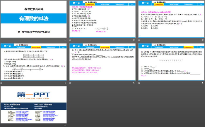 关键词:北师大版七年级上册数学PPT课件免费下载,有理数的减法PPT下载,有理数及其运算PPT下载,.PPT格式;