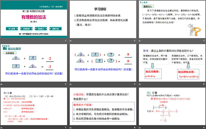 关键词:北师大版七年级上册数学PPT课件免费下载,有理数的加法PPT下载,有理数及其运算PPT下载,.PPT格式;