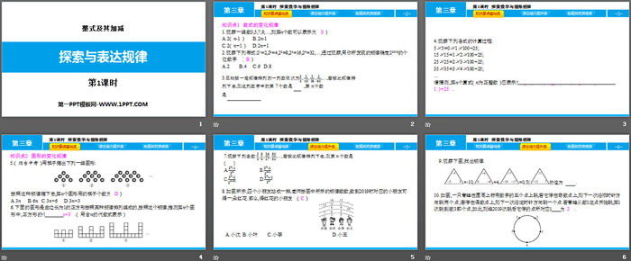 关键词:北师大版七年级上册数学PPT课件免费下载,探索与表达规律PPT下载,整式及其加减PPT下载,.PPT格式;