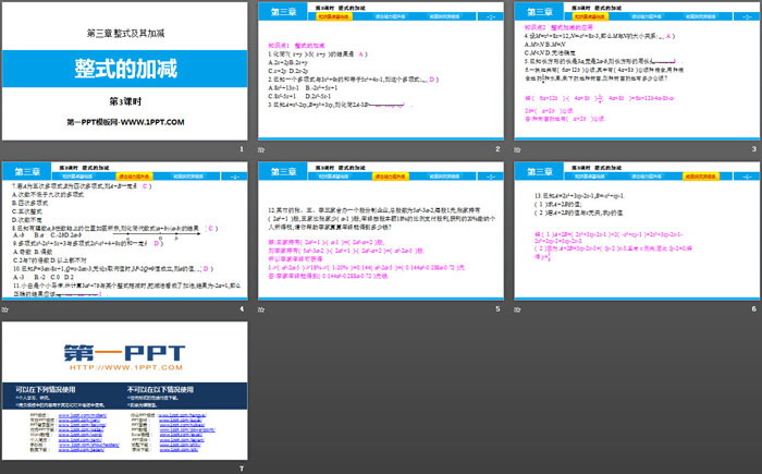 关键词:北师大版七年级上册数学PPT课件免费下载,整式的加减PPT下载,整式及其加减PPT下载,.PPT格式;