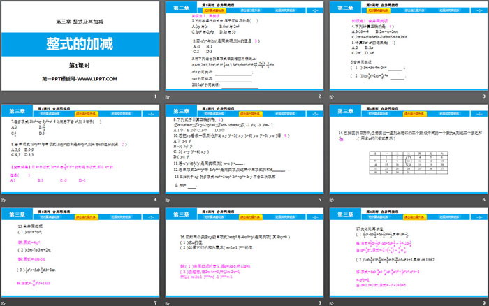 关键词:北师大版七年级上册数学PPT课件免费下载,整式的加减PPT下载,整式及其加减PPT下载,.PPT格式;