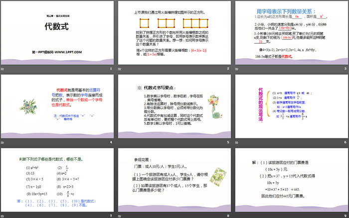 关键词:北师大版七年级上册数学PPT课件免费下载,代数式PPT下载,整式及其加减PPT下载,.PPT格式;